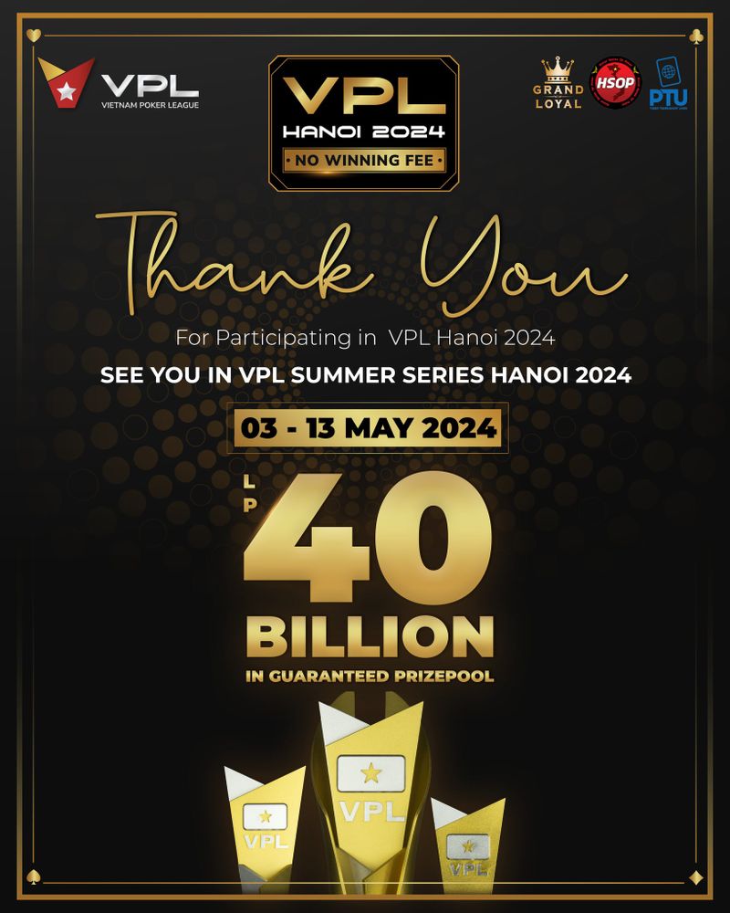 Một khởi đầu vô cùng thành công cho Vietnam Poker League. Hãy đón chờ sự trở lại của VPL vào tháng 5.