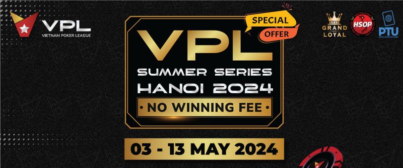 VPL Summer Series giải đấu quốc nội, NO WINNING FEE, với mức GTD LP 40B cho toàn giải đấu đã sẵn sàng từ ngày 03-13 tháng 05 năm 2024 tại Grand Loyal Poker Club, 146 Giảng Võ, Ba Đình Hà Nội.